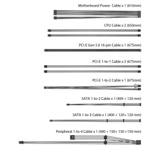 Form Factor: ATX12V ATX 3.0: ano Rozměry: 150 x 150 x 86 mm Účinnost: 80Plus Gold Ochrana: OPP/OVP/UVP/SCP/OCP/OTP Vstupní napětí: 100-240Vac Stejnosměrné výstupní napětí: +3.3V +5V +12V -12V +5Vsb Maximální zátěž: 25A 25A 83.3A 0.8A 3A Kombinovaná zátěž: 130W 130W 1000W 9.6W 15W Celkový výkon: 1000 W Konektory: *MB 24/20-pin x 1 *CPU 4+4-pin x 2 *PCI-E 16-pin x 1 *PCI-E 8-pin x 4 *SATA x 5 *PERIPHERAL x 4 Hmotnost: 2,48 kg 0dB tlačítko: ne