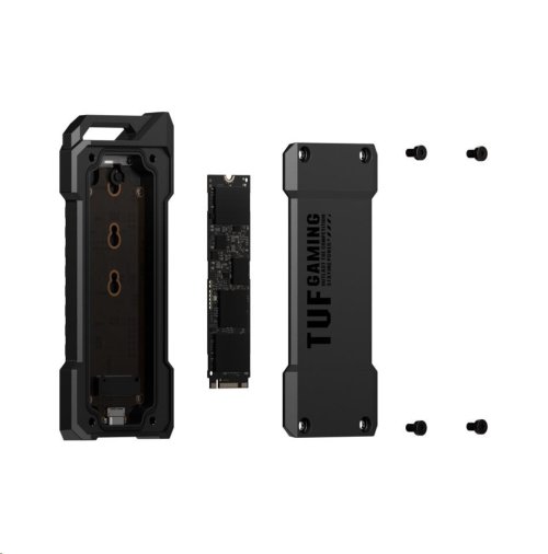 ASUS TUF Gaming A2, černý Pouzdro USB-C 3.2 Gen 2x2 SSD, dvě rozhraní M.2 NVMe PCIe a SATA, M.2 Q-Latch pro snadnou instalaci, odolnost proti pádu MIL-STD-810H, odolnost proti vodě a prachu IP68, vylepšený …