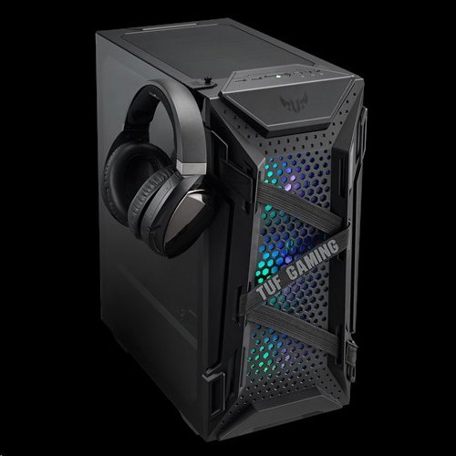 ASUS TUF Gaming GT301 ATX middle tower je kompaktní počítačová skříň s tvrzeným sklem, designovým čelním panelem, 120 mm AURA RGB ventilátory, držákem na sluchátka a podporou chlazení 360 mm.