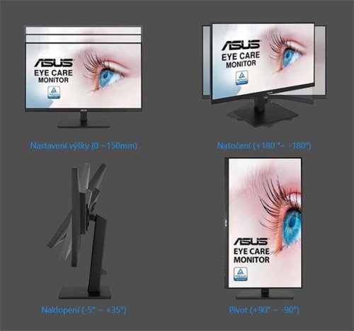 Monitor ASUS VA27AQSB pro péči o oči - 27 palců, WQHD (2560 x 1440), IPS, bezrámový, 75 Hz, Adaptive-Sync, DisplayPort, HDMI, péče o oči, Low Blue Light, bez blikání, připevnitelný na zeď, ergonomický stojan