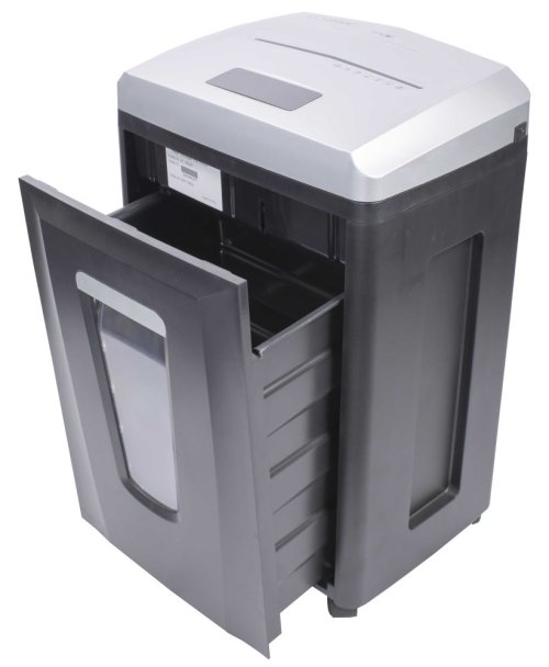 Kvalitní skartovací stroj ergonomického designu, vhodný pro skartaci dokumentů o šířce až 230 mm. Snadné ovládání je zajištěno dotykovým panelem. Stroj je standardně vybaven automatickým systémem start/stop, zpětným chodem, tepelnou pojistkou motoru proti přehřátí a signalizací přeplněného koše. Příležitostně lze skartovat sešívací a kancelářské sponky a díky samostatnému vstupu i kreditní karty a CD. Lehce vyprázdnitelná odpadní nádoba má objem 22 l. Praktická pojezdová kolečka usnadňují manipulaci.