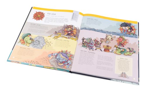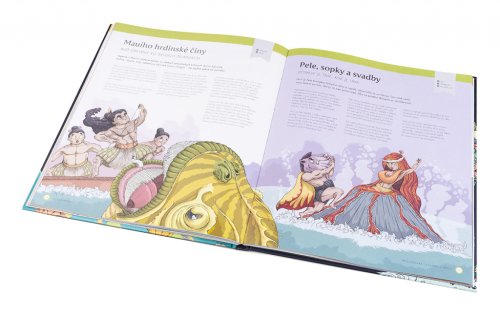 Když si budete mapy prohlížet a číst příběhy, které je doprovázejí, procestujete zeměkouli křížem krážem. Poznáte, jaké legendy si vyprávěli původní obyvatelé severní Ameriky, jak nahlíželi na svět a jeho stvoření příslušníci úžasné civilizace Aztéků nebo domorodý kmen Janomamů v Amazonii. Hlouběji se seznámíte s řeckými mýty, dobře známými přinejmenším v celé Evropě, ale proniknete i do magického světa irských, severských či slovanských bohů. V Africe vás pohltí přízračný jorubský svět nebo rovněž světoznámé mýty starých Egypťanů. V Asii vám pak učarují hinduistické a japonské legendy a v Oceánii svět polynéských domorodých kultur.