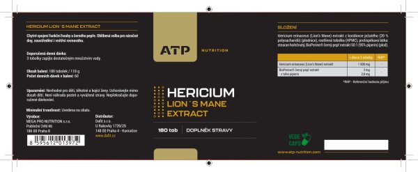 Hericenony: Tyto fenolové látky se nacházejí v plodnicích houby. Erinaciny: Jsou to sesquiterpenoidy obsažené v myceliu houby. Hericium erinaceus, nebo-li Lion's Mane, je houba s bohatou historií v tradiční medicíně. Její potenciál pro podporu kognitivních funkcí, nervového systému a trávicího traktu je předmětem intenzivního vědeckého výzkumu. Doporučené dávkování: