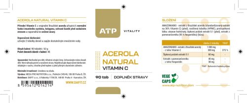 ATP Vitality Acerola Natural Vitamin C Objevte sílu přírody: Originální brazilská acerola – nejčistší zdroj přírodního vitamínu C V dnešní době, kdy jsme vystaveni stresu, znečištěnému prostředí a nedostatku kvalitní stravy, si naše tělo zaslouží tu nejlepší podporu z přírody. A právě acerola, drobné červené ovoce pocházející z panenských oblastí Brazílie, je považována za skutečný poklad mezi superpotravinami. Acerola (Malpighia glabra) je známá jako přírodní vitamínová bomba – obsahuje až 30× více vitamínu C než pomeranč! Navíc v ní najdete i další cenné látky, jako jsou bioflavonoidy, karotenoidy a polyfenoly, které společně zvyšují účinnost vitamínu C a chrání buňky před oxidačním stresem. Síla z Brazílie v každé dávce Naše acerola pochází přímo z brazilských plantáží, kde se plody sklízejí v optimální zralosti a okamžitě zpracovávají, aby si zachovaly maximum účinných látek. Díky šetrné metodě sušení při nízké teplotě si uchovává autentickou chuť i přirozený vitamínový profil. Co dělá naší acerolu tak výjimečnou? Organická Amazon BioAcerola se získává z pyré zelené aceroly, které bylo podrobeno mražení, lyofilizaci a mletí v souladu s GMP. Bez alkoholu, konzervantů, přísad, ozařování a fermentace. Přírodní vitamín C vs. syntetický – v čem je rozdíl? Není vitamín jako vitamín. Zatímco běžné doplňky často obsahují syntetický vitamín C, AmazonBio Acerola nabízí komplexní, plně přírodní formu vitamínu C, kterou tělo lépe vstřebává a využívá.