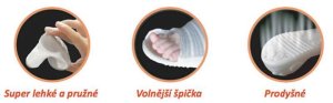 • Lehkost a flexibilita. Podrážka je ze silikonu a ponožka z bavlny. Tento jednoduchý materiál dělá obuv velice lehkou a pružnou.