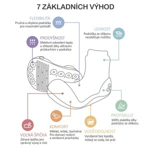 • Prodyšnost. Prodyšná podrážka, díky které dětská noha může dýchat a nezapařuje se.