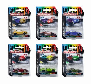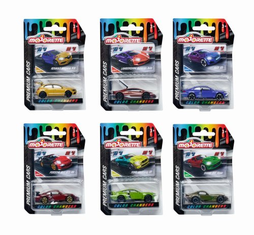Kovové modely aut s efektem změny barvy. Při snížení teploty na 10°C (vložení do ledničky nebo ponoření do studené vody) autíčko změní barvu. Při dosažení pokojové teploty (22°C) se barva změní zpět na původní zabarvení. Autíčko na volnoběh, s otevíracími díly a odpruženými koly. 6 druhů - Porsche 911 GT3 RS, Lamborghini Huracán, Audi S5 Coupé, Ford Mustang GT, Dodge SRT Viper, Renault Megane R.S. Včetně sběratelské kartičky. Délka 7,5 cm.