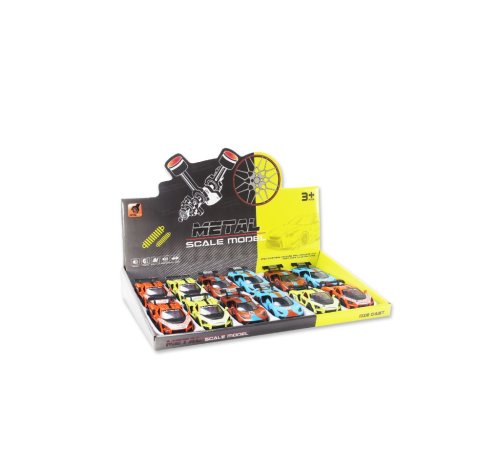 Kovový model auta ve 4 designech, kterému lze otevírat dveře. Funkce pull back – natáhni a jeď.