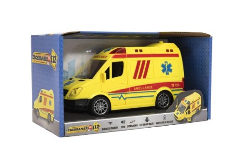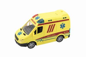 Ambulance je vozidlo, které se využívá při přepravě zraněných pacientů, k dopravě raněných nebo nemocných. Takové autíčko nesmí chybět v žádné sbírce autíček. Baterie 3x AG13 jsou součástí výrobku. Ambulace má otevírací dveře a je na setrvačník. Vyrobeno z kvalitního a odolného plastu. Velikost auta je 20 cm. Vhodné pro děti od 3 let.
