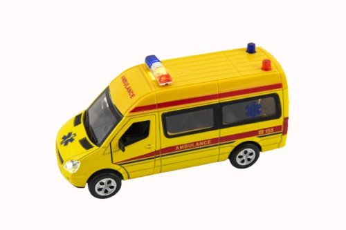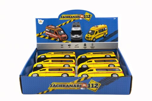 Kovové autíčko pro malé záchránaře je vyrobeno s plastovými doplňky. Malý model jezdí na zpětné natažení, má otevírací přední a zadní dvěře, vydává zvuky startování a houkačky, má efekty blikajících světel. Kupte dětem záchranářský vůz! Velikost ambulance je 15cm. Baterie 3x AG13 jsou součástí balení a slouží pouze pro zkušební účely. Rozměry výrobku 15cm. Vhodné pro děti od 3 let.