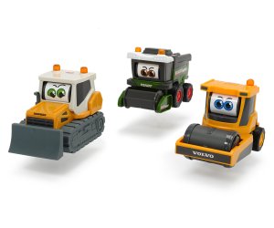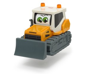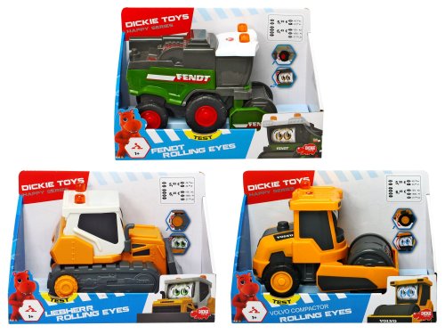 Veselé pracovní autíčko pro nejmenší, na volnoběh a při jízdě koulí očima. Délka 16 cm. 3 druhy: Fendt kombajn, Volvo kompaktor nebo Liebherr buldozer.