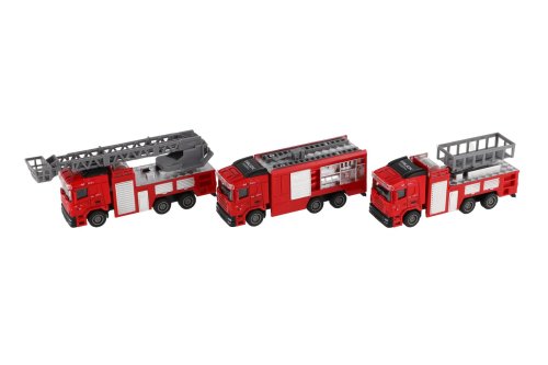 Vyberte si své oblíbené hasičské auto. Auto je na zpětné natažení. Varianta se žebříkem má vysouvací žebřík. Varianta s plošinou má vysouvací plošinu. Rozměr auta: 13-16 cm Vhodné pro děti od 3 let