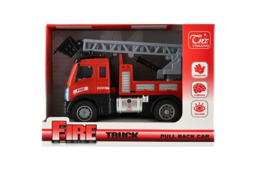 Krásný model hasičského auta. Auta jsou vyrobena z kvalitního plastu a má vysouvací žebřík. Auto je na zpětné natažení. Velikost auta: 13 cm Rozměr balení: 17 x 12 x 8 cm Vhodné pro děti od 3 let
