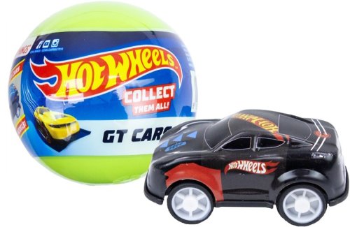 Krabička/kapsle/koule s překvapením obsahující kovové autíčko Hot Wheels GT, 65mm, autíčko má pohon na pull-back, 12 druhů