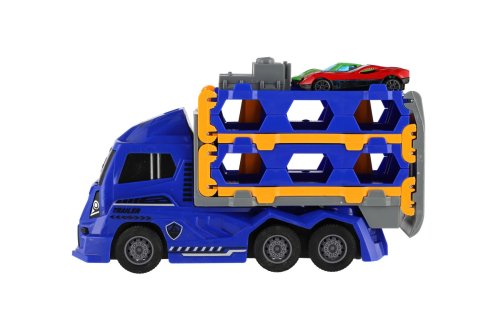 Kamion s autíčky pro malé řidiče. Parádní plastový kamion, který slouží jako přepravník pro závodní auta. Součástí balení jsou 2 sportovní autíčka a délka auta je 22 cm. Vozidlo je vybaveno setrvačníkem, díky kterému se po natažení rozjede. Skvělá hračka pro všechny děti, které milují kamiony a závodní auta. Vhodné pro hru doma i venku. Rozměry výrobku 8 x 14 x 22 cm. Vhodné pro děti od 6 let.