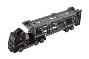 Vydej se na policejní zásah s parádním kamionem přepravníkem! Tento velký plastový tahač s realistickým designem a pohonem na setrvačník přepravuje tři různá policejní autíčka, která lze snadno vyjímat a znovu nakládat díky funkční rampě. Dvoupatrový návěs je výklopný a zajišťuje skvělou hratelnost i prostor pro uložení vozidel.