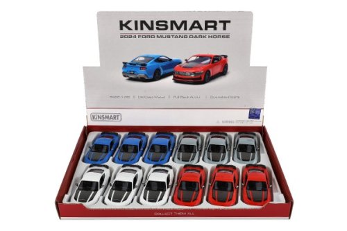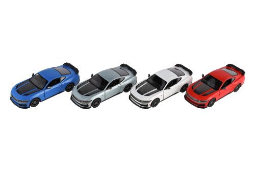 Krásný kovový model auta Ford Mustang Dark Horse 1:38. Autíčko má otevírací dveře a je na zpětné natažení. Dostupné ve čtyřech barevných variantách. Velikost auta je 12 cm. Vhodné pro děti od 3 let
