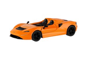 Extrémní výkon, otevřená konstrukce a luxusní styl – to je McLaren Elva, nyní jako detailně propracovaný kovový model od značky Kinsmart. Auto je vybaveno zpětným natažením (pull-back) a otevíracími dveřmi, což z něj dělá perfektní hračku i sběratelský kousek. Velikost auta: 13 cm Vhodné pro děti od 3 let