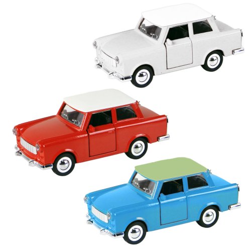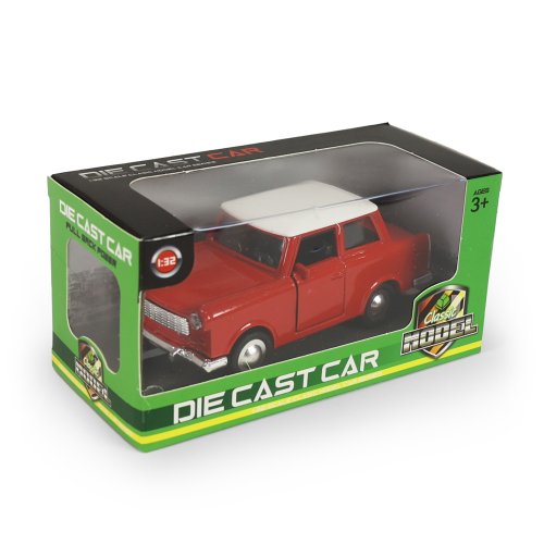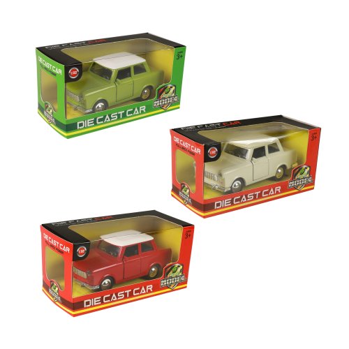Senzační kovové retro auto Trabant na zpětný setrvačník, má otevírací dveře a jeho délka je cca 12 cm. Tato hračka je skvělým dárkem pro všechny sběratele autíček!