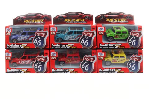 Kovové terénní auto na zpětný chod. Rozměry cca 10x5x4 cm. Baleno v krabiččce. Rozměry balení cca 15x8x6 cm. Více druhů - dodáváme dle skladové dostupnosti. Věk 3+