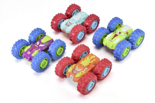 Auto na setrvačník s velkými koly a přetáčecí funkcí. Délka 10 cm, 4 druhy.