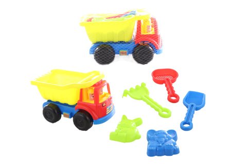 Sada na písek obsahuje auto, lopatku, sítko, hrabičky a 25 bábovičky. baleno v síťce. Rozměr cca 23 x 14 x 13 cm. Věk 3+