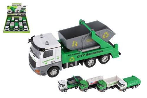 Pomozte udržet město čisté s tímto parádním nákladním autíčkem úklidových služeb! Autíčko má realistický vzhled, je vyrobeno z kombinace kovu a plastu a díky zpětnému natažení snadno vyrazí do akce. Čtyři různé typy vozidel (např. popelářské, čistič ulic aj.) pro ještě větší zábavu při hraní. Velikost: cca 14 cm Vhodné pro děti od 3 let