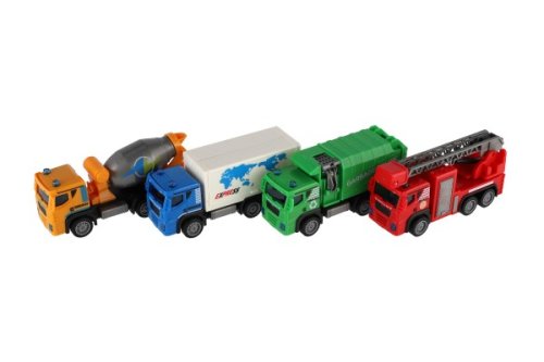 Vybrat si můžete ze 4 druhů aut, ať už stavební, nákladní nebo převozní. Auto je na zpětné natažení velikosti 15 cm. Vhodné pro děti od 3 let.