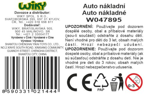 Auto nákladní, volná kola. Rozměry 18x10x10,5 cm.