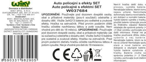 Auto policejní set 4ks. velikost auta 26cm. Obsahuje velké auto, 2malé auta 7cm, 2 panáčky. Světelné (melodie, motor, maják) a zvukové efekty. Setrvačník. Baterie 3xAG13 součástí.