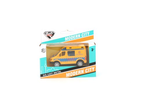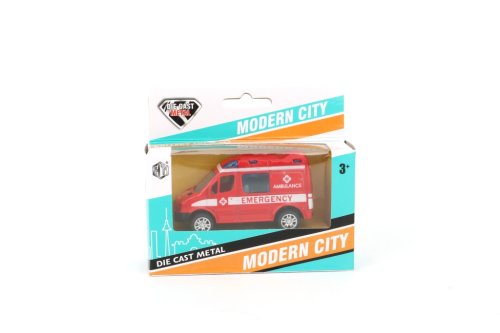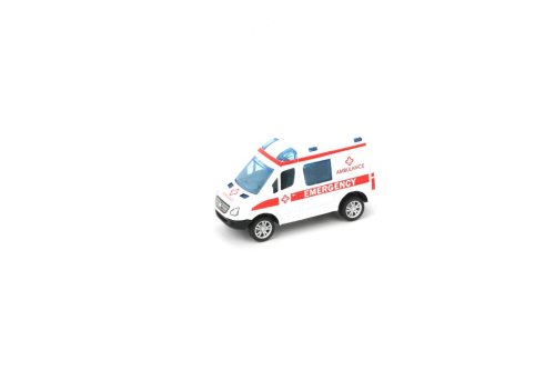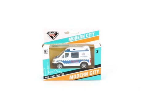 Kovový model policejního auta ve 4 designech, kterému lze otevírat dveře. Funkce pull back – natáhni a jeď.