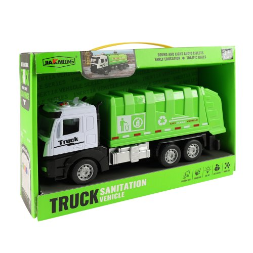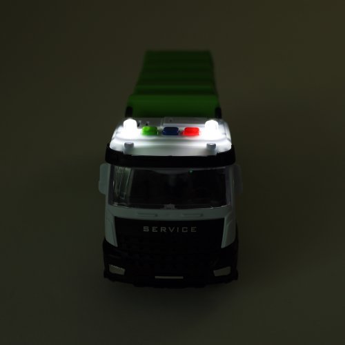 Toto realisticky zpracované popelářské auto potěší každého malého milovníka techniky! Auto je vybaveno světelnými a zvukovými efekty, které se spustí stisknutím tlačítka. Díky pohonu na setrvačník stačí auto postrčit a samo dojede. Délka vozidla je přibližně 25 cm, což z něj dělá ideální velikost pro hru doma i venku. Výrobek obsahuje 3 ks baterií typu AG13, které jsou potřeba pro zvukový i světelný efekt, baterie jsou součástí.