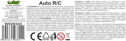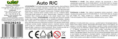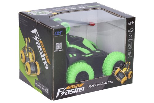 Auto RC na dálkové ovládání. Rozměry 12x11x11 cm. Otáčející se přední část auta kolem své osy. Světelné efekty. Frekvence 27 MHz. 3xAAA do auta a 2xAA do ovladače nejsou součástí. Přepínač ON/OFF na spodní straně auta. 2 varianty - žlutá, zelená.