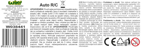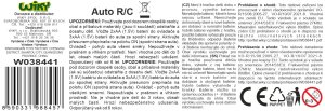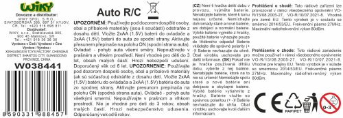 Auto RC na dálkové ovládání. Rozměry 17x9x7,5 cm. Frekvence 27 MHz. 3xAA do auta, 2xAA do ovladače nejsou součástí. Přepínač ON/OFF na spodní straně auta.