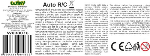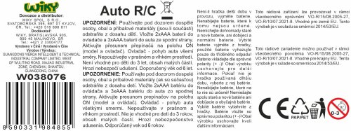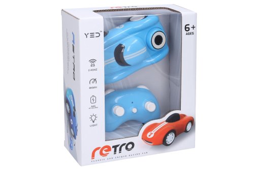 Auto retro závodní RC na dálkové ovládání. Rozměry 15,5x8,5x6,5 cm. Frekvence 2.4GHz. Rychlost 8 km/h. Dosah až 25 m. Světelné efekty. 3xAAA baterie do auta, 2xAAA baterie do ovladače nejsou součástí. Tlačítko ON/OFF na ovladači, přepínač ON/OFF na spodní straně auta.