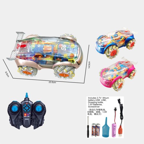 Funkce a vlastnosti: Světelné a zvukové efekty pro maximální zábavu Transparentní vzhled – sleduj vnitřní mechanismus v pohybu Kouřový efekt – naplň zadní část auta vodou a sleduj kouř Multisměrný pohyb – dopředu, dozadu, do stran i boční drift Tlačítko pro ukázku – podrž po dobu 3 sekund a aktivuj kouřový efekt Maximální rychlost: 6 km/h