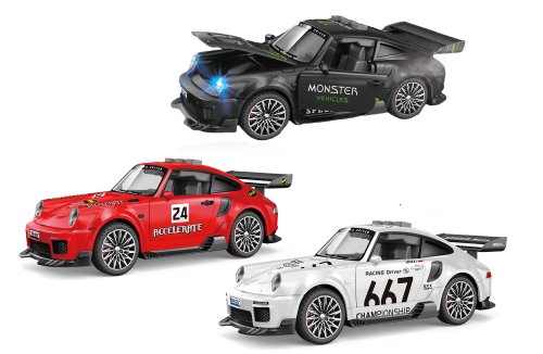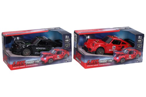 Auto s kouřovými efekty. Rozměry 15,5x6,7x5,5 cm. Otevírací kapota a dveře. Vydává světelné, zvukové a kouřové efekty. Aktivace tlačítky na střeše (zvuk motoru, zvuk sirény, hudba). Baterie 2xAAA, nejsou součástí. 3 varianty - červená, černá, bílá.