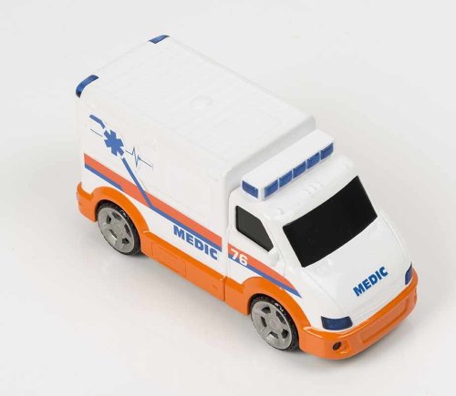 Nový model sanitky záchranné služby od Teamsterz se zvukem a světlem. Výborně propracovaný design a velikost auta zaujme každého malého záchranáře Sanitka má funkční maják. Realistické zvuky: startování, výjezd k akci, rychlá jízda s houkačkou. Rozměry auta: 15 × 7,5 cm. Rozměry balení: 17,5 × 11 × 9 cm. Baterie 3 x LR44 (jsou součástí balení). Kvalitní plastové zpracování. Vhodné pro děti od 3 let.