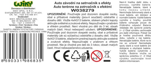 Auto sklápěč s efekty. Rozměry 15,5x13,5x10,5 cm. Světelné, zvukové a pohybové efekty tlačítkem na nakládací ploše a postranními tlačítky (zvuk motoru, hudba, jízda dopředu, dozadu). 3xAAA baterie součástí.