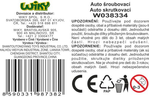 Auto šroubovací. Rozměry 13x9x9 cm. Volná kola. Obsahuje auto, šroubovák.2 varianty - nákladní, popelářské.