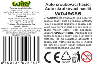 Auto šroubovací hasiči. Rozměry 12,7x16x16 cm. Volná kola. Obsah balení - auto, šroubovák.