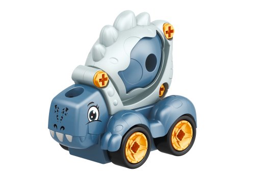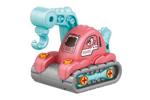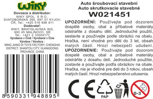 Šroubovací auto, stavební stroje. Velikost 12 cm. Obsah balení - auto, šroubovák. 4 varianty - jeřáb, bagr, domíchávač, přepravní. Obrázkový návod na složení na obalu.