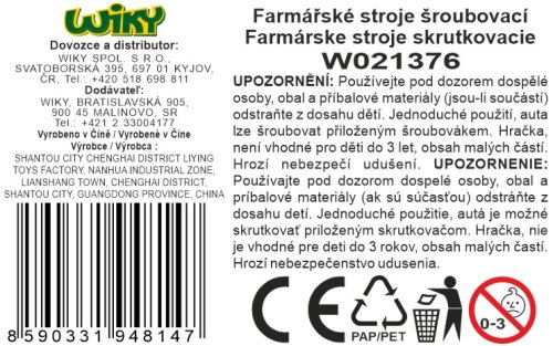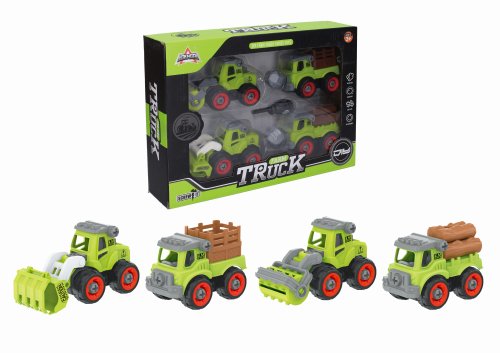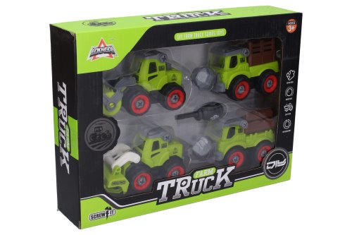 Auto šroubovací zemědělské 4 ks. Velikost 13 cm. Volná kola. V balení - 4 auta, náklad, šroubovák.