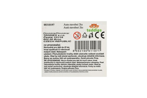 Tato sada dvou stavebních vozidel je skvělým doplňkem do každé dětské sbírky pracovních strojů. Autíčka jsou vyrobena z odolného plastu a mají volný chod, takže se snadno pohybují po jakémkoli povrchu – stačí je postrčit a jedou. Rozměry balení 39 x 14 x 12 cm Vhodné pro děti od 3 let