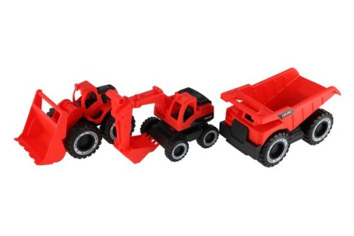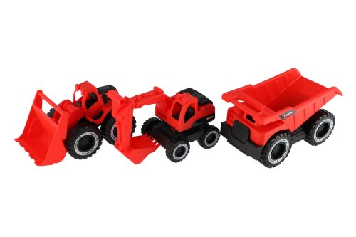 Tato sbírka stavebních strojů nesmí chybět ve sbírce každého kluka. Autíčka jsou vyrobená z plastu a jezdí na volný chod. Sbírka strojů je vhodná také na velké stavby v pokojíčku či na pískovištích. Sada obsahuje 3 ks autíček velikosti cca 15 - 19 cm. Rozměry balení 31 x 34 x 10 cm. Vhodné pro děti od 3 let.