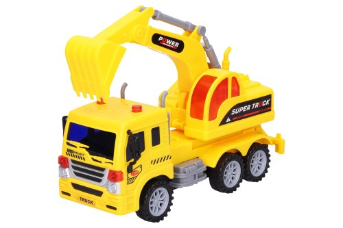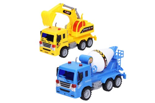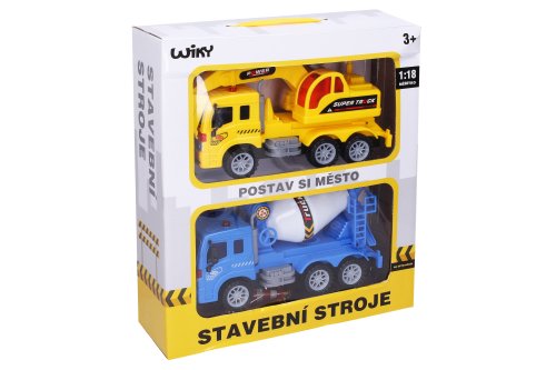 Auto stavební a značky 2ks. Velikost 23cm. Balení obsahuje bagr, domíchávač, a značky. Na setrvačník.