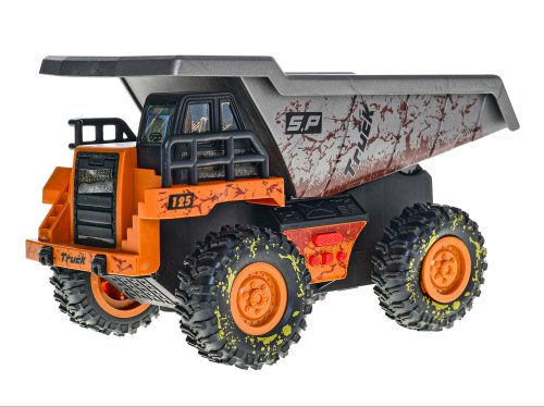 Auto stavební sklápěčka 25 cm na setrvačník na baterie se světlem a zvukem