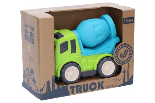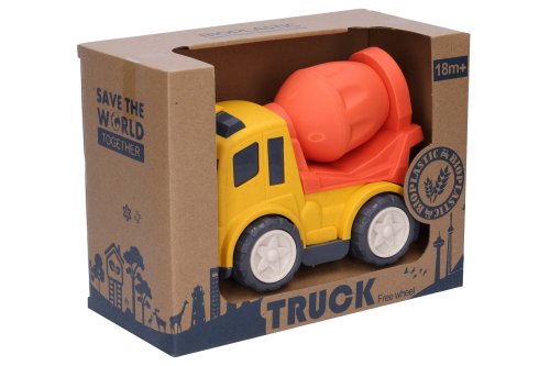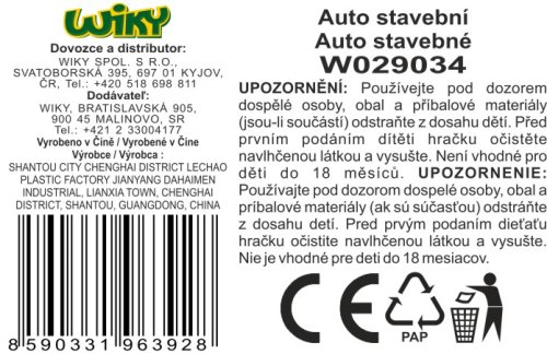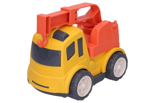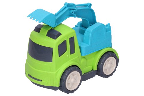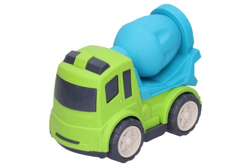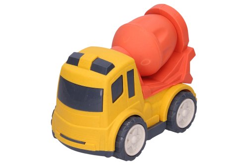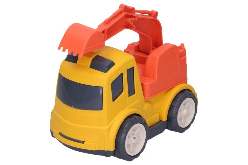 Auto stavební stroje. Velikost 17 cm. 4 varianty - bagr, jeřáb, domíchávač, sklápěč. 2 barevné varianty - modrá, červená. Volná kola.