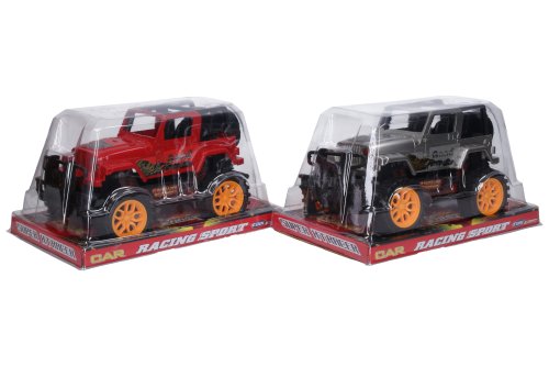 Auto terénní. Rozměry 20x12x11 cm. Na setrvačník. 2 varianty - stříbrná, červená.