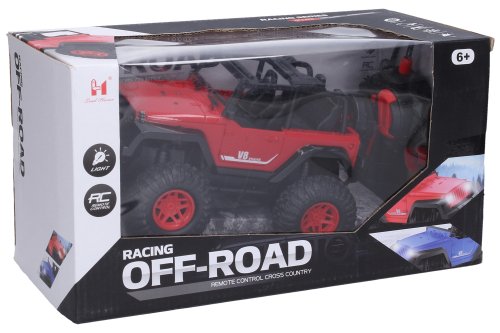 Auto terénní V8 RC na dálkové ovládání. Rozměry 21x13,8x12 cm. Frekvence 27 nebo 40MHz. Pistolový ovladač. Světelné efekty. Bateriový pack 3.7V 500mAh do auta součástí, 2xAA do ovladače nejsou součástí. USB kabel součástí. Přepínač ON/OFF na spodní straně auta.